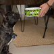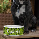 緑の背景に黒いつる植物を描いた私のパターンデザインを特徴とするペット製品。