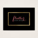 1201AMまでにGlam Black Pink金ゴールドラッシュサロン名刺テンプレートでコーディネート。ピンクの書道フォントは、カードの後に付けたまつげエクステンションの上に余分なガラスのための金属製の金ゴールドボックスで囲まれている間にフェイク、あなたの名前やビジネス名をスウォープの尾と繊細な曲線と気にします。必要に応じて背面の指示を更新する。このデザインは一連の調整オフィス用品の一部であ救済り、ラッシュビジネスをブランド化。© 1201AMクリエイティブ