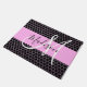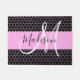 Glamと黒ガーリーとピンクの金属製ハニカムハニカムパタンモノグラム名とイニシャルdoormat.あなたの名前をカスタムするとモノグラムは書、ピンクの背景を持つ白黒の手書き文字のスクリプトに入っている。オプションを使用して、文字の色とフォントのスタイルとサイズを変カスタマイズ更できる。