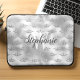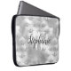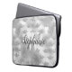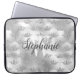 シルバーフォイルの背景にフェイクグリッタークラウンパターンを搭載したシックな袖でノートパソコンにグラマーのtouchをフェイク追加する。ホワイトセリフフォントでイニシャルをカスタマイズし、木炭グレーの書モダン字スクリプトで名前を付ける。