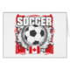 カナダのサッカーの選手およびファンのためのカナダ、サッカーボールおよびグランジな背景、素晴らしいの旗が付いているカナダのサッカーのギア!