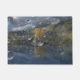 北の山の空描写に暗い雨の日の短い焦点。背景には灰褐色の丘と銀色の湖の島に黄色い紅葉を持つ柳の木がある。手前には中風の雨凍ってい滴があり、真ん中に一つがあると金色の柳と反射が鋭い焦点に持ち込まれる。