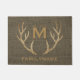 グリッターのシカの(雄ジカの)枝角の素朴なバーラップ家族のモノグラム ドアマット