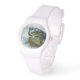 この緑のカエルは幸せな顔だ。この時計の顔を見るたびに君は出来ない救済がスマイル。