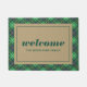 グリーンクリスマスプレイドパーソナライズされた歓迎 ドアマット