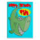 7番目の誕生日挨拶と大きな緑の漫画サメ。