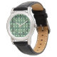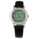 この女性の時計は、緑の色合いのLsから作られた幾何学的なデザインがデザインの間で繰り返し違う方向に敷設されている。