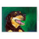 緑の背景に犬のペットポートレート。絵画はア描写クリルで。