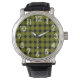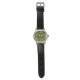 このメンズウォッチは、緑のフィールドにモダン黒いダイヤ無地のモンドの輪郭の中に黒いダイヤモンドのミッドセンチュリーデザインを持っている。