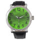 この男性用ウォッチは、水平に緑のデザインの5つの色合いの幾何学的ランニングなを持つ。
