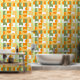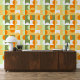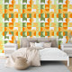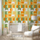 グリーンライトライムオレンジホワイトサークルアートパターン 壁紙