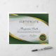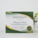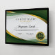 洗練されたスタイルで功績を称えよう エレガントなグリーン&ゴールドの証明書テンプレート - 優れた成果を強調する、モダンで格式高いプレゼンテーションを実現するためにデザインされました。 流れるような緑と金のウェーブアクセント、洗練されたニュートラルな背景、受賞者の名前を記す優雅なスクリプトタイポグラフィー、そしてクラシックなゴールドの賞章が、この証明書がプレステージと業績を瞬時に伝えるためにデザインされたことを物語っています。 受賞者の名前を中心に据えながら、賞の詳細、日付、署名のための明確に定義されたセクションを提供するバランスの取れたレイアウトが特徴です。 その洗練されたプロフェッショナルなデザインは、企業の表彰、従業員の賞、学業優秀者、リーダーシップの栄誉、トレーニングの完了、省庁の認定、ボランティアの感謝、そして特別なマイルストーンなど、さまざまなシーンで最適です。