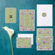 グリーン パープル レトロ Y2K ファンキー ヒッピーフラワーパターン 招待状 (スタンド正面)