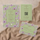 グリーン パープル レトロ Y2K ファンキー ヒッピーフラワーパターン 招待状 (この独立クリエイターのコレクションをカスタマイズ。)グリーン パープル レトロ Y2K ファンキー ヒッピーフラワーパターン 招待状 (正面)グリーン パープル レトロ Y2K ファンキー ヒッピーフラワーパターン 招待状 (裏面)