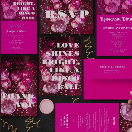 グルーヴカラフルィーピンクグリッターディスコ結婚ボール 招待状