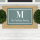 灰色のティール(緑がかった色)青と緑と白のエレガントモノグラムのドームで家の入り口をリフレッシュ。色は変更できる。スクリプト内の家族の姓とセリフスタイルモノグラムイニシャルでパーソナライズ。デザインは枠シンプル付き縁どを含む。