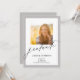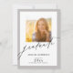 こエレガントの卒業案内には、正面に1枚、背面に2枚の正方形の写真立てが取り上げられます。このデザインは、手書きのモダンスタイル文字とグレーでアクセントされる。背面をカスタマイズするには、パーティの招待状詳細を使用します。