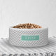 シックカスタムなシェブロンのプリント模様のドッグモダンフードやウォーターガーリーボールをデザインしたドッグフード。ペットの名前を長方形の枠に入れてパーソナライズする。クリックカスタマイズ文字フォントと色を変えて優しいデザインユニークを作り出す!