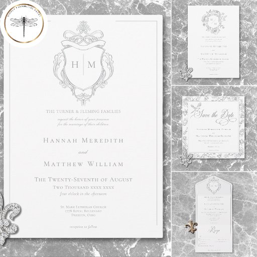 私たちのヴィンテージバロックエレガントスタイル結婚式招待状、時代を超越したエレガンスの最高傑作であなたの特別な日を高める。繊細なラインフランスのアートの花と美しい白い背景に鳥を付け縁どた繊細なほこりっぽい銀の灰色の中華感覚を備えたデザインは、クラシックの魅力と洗練さを醸し出している。そのシンプルさは、洗練された詳細を強調し、あなたの愛の物語のように優雅なデザインを作成する。伝統と優雅さを大切にする人に最適。Simple Farmhouse Pressによって作成。