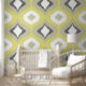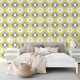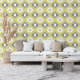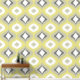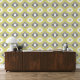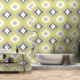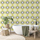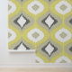 グレーグリーンイエローマスタードホワイトイカットパターン 壁紙