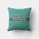 グレースタイリッシュティール(緑がかった色)ストライプズホワイト名前をカスタムする アウトドアクッション