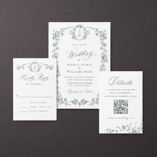 ヴィンテージ再生ミニアシンプルリストのエレガントな結婚式ボヘミアンバロックトワールデジュイ珍重の花紋章結婚モノグラムフランスの爪ほこりっぽい緑の野花エレガントフランスのバラ