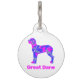 偉大なDane犬のシルエット熱狂するホットピンクと青の抽象芸術パターンの子犬アクセサリー。ペットの名前を前面に、詳細を背面に表示。素晴らし動物愛好家ペットギフト保はあなたの犬の安全に。