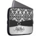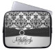 リボンとジュエルフェイクブルックを備えた灰色パーソナライズされたと黒のダマスクのラップトップスリーブは、あなた自身の名前、モノグラム、ビジネス名、または他の文字と一緒にカスタマイズ文字ボックスを持っている。必要もしな情報が救済カスタマイズ必要な場合は、電子メールniteowlstudio@gmail.comを送信してください。