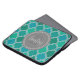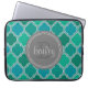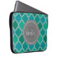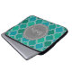 グレーモノグラムのティール(緑がかった色)モダン格子パターン ラップトップスリーブ
