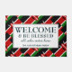 パーソナライズされた,ケニスタイリッシュヤ歓迎の言葉と賛美WELCOME & BE ALL WHO ENTER HEREとプレースホルダネームを入力したフォーマット。背景にはケニアの国旗がタイル状に描かれている。すべての文字はカスタマイズ可能で、例えば家族の名前、家族のモットー、引用文を追加する必要に応じて用語を修正でき感動的る。