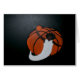 より大きい"惑星"のバスケットの球のまわりで輪になる手元のバスケットの球を持つアフリカ系アメリカ人の人。 アクリルの絵画。