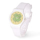 このクラシックの四つの葉クローバーは、アクセントとしてオレンジのビットと緑の複数の色合いでケルトのウェイブの層を含む同心円のデザインをオーバーレイ。この時計は、子供と大人の両方のサイズを含む色、スタイル、およびサイズの様々な利用可能である。