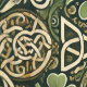 ケルトの華開きは、古の地で春が目覚めるようで、そこでは民話がまだ息づいている。 組み合わされたケルトの結び目は、生き生きとしたメロディの織物のように、音楽がループし、織りなし、円を描いて戻ってくることを示唆している。 明るい緑色の色調は、生き生きとしたフィドルのダンスと、苔むした森をフィルターにかけるあたたかい太陽の光を想起させ、黄金の糸は、遺産、崇敬、時代を超えた儀式をほのめかしている。 曲は、おそらく陽気なリールと柔らかなハープの節をブレンドし、祝祭と神秘主義のバランスをとるだろう。 それは、祖先の誇り、祭りの笑い声、古い言葉で語られる祝福、そしてクローバー畑が風にささやく静かな魔法の精神を宿している。