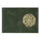 伝統的な古代ケルト族のオーナメント、複雑な円を形作るために編まれる4ドラゴンまたはsnakelike創造物をケルト結び目模様で示します。 オーナメントは緑で織られ、装飾的な質との深緑色の背景で日焼けします。