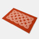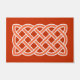 深いのオレンジ色の背景に白で縁取られたミディアムオレンジ色のパターンで、神聖な幾何学と宇宙のすべての生命の相互接続性を象徴するケルト色、長方形、連続した結び目のパターンでDoormat