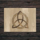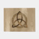 木製の背景に対してシンプル三位一体のシンボルを形成する円と交絡したスピリチュアル色のケルトのトリケトラを特徴とするドアマットは、神との神の団結を表す。