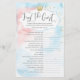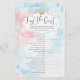 金ゴールドのグリッターとクラウンとピンクモダンブルーの水色の背景にスクリプトフォントを備え、驚きに最適なベビシャワーゲームカード!このカードを使って性別を明かすパーティー!