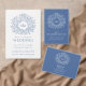 モノグラム葉の客結婚客の情報シートの青い円。お客様結婚の目的地に到達する方法を理解し結婚て、結婚式の日のスケジュール、宿泊情報およびソーシャルメディアハッシュタグの詳細を見るために理想的な美しい情報のチラシ。独自の詳細でパーソナライズ他の一致する項目も利用可能である。要もし連絡救済して下さい。©サラ・トレットによるオリジナルアートとデザイン専用www.mylittleedenweddings.com