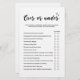 AとモダンOverまたミニマルはゲームの下で白黒。オーバーまたはアンダーブライダルシャワーゲームは学、カード上のステートメントが正しい数の上または下にあると推測することによって新郎新婦の詳細を知るためのおもしろいの方法である。この「オーバーまたはアンダーゲーム」は、ブライダルシャワー、婚約パーティ、バチェロレッテまたは結婚式のレセプションのためのおもしろいアクティビティ素晴らしと、ゲスト間の氷を壊す方法である。