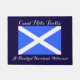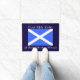 スコットランドの恋人のための歓迎された家のドア・マットおよびスコットランドすべての事。 デザインの中心では青いパネルのSt Andrewの白い十字が付いているスコットランドの旗のグラフィックは、あります。 saltireの上で」英国翻訳「を用いる伝統的なスコットのゲール族の挨拶"Ceud Mìle Fàilteは招待のスタイルの白い流れるレタリングの旗の下の十万の歓迎」、あります。 カスタマイズボタンが付いているスーツに濃紺の背景色を変えることができます。 玄関マットはスコットランドのつながりを持つ友人そして家族のための完全で新しい家または引っ越し祝いパーティーのギフトです。