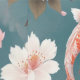 このデザインはエレガントコイ魚が穏やかなティール(緑がかった色)の背景に咲くさくらんぼの花の中で優雅に泳ぐのを特徴とする。コイは主にオレンジ鮮やかがかった赤のマークで白く、花の柔らかいピンクの花びらに対して印象的なコントラストを作成する。繊細なさくらんぼの花の枝は、静けさと自然の美しいのtouchを追加するシーンをフレーム。全体的な構成は、平和、調和、美意識を伝統的喚起日本のする。
