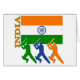 3つは側面に沿う国名インドのインドの旗の下でインドのコオロギプレーヤーのシルエットを描きました。