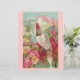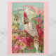 コカトゥーと明ビクトリアンるいピンクのバラが付いた美しいカラフルシーンのプリント。背後には山やヤシの木がある。この鸚鵡は鮮やかなピンク色の冠を付けている。