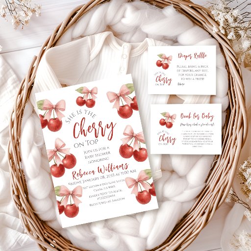 Coquette Pink Bow Red Cherry on Top Baby Showerデザイン: Tetiana Domushkina