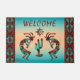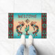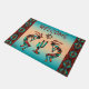 この"種類ユニークの1つ"南西ココペリのDoormatをパーソナライズ!2つのココペリ遊のフルートと踊りのターコイズの下のサボテンとオレンジのサンセットの背景…ターコイズの南西に囲まれ、オレンジとブラック!アーティスト・ケリー・ミラーによるオリジナルアートデザイン。