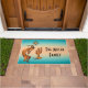 この"種類ユニークの1つ"南西ココペリのDoormatをパーソナライズ!銅南西ココペリのフルート遊と踊りのサボテンを太陽の下にのまわりに置く…ターコイズとオレンジ色の夕日の背景!アーティスト・ケリー・ミラーによるオリジナル「ある種の」アートデザイン。