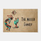 この"種類ユニークの1つ"南西ココペリのDoormatをパーソナライズ!ターコイズの南西ココペリ、オレンジとブラック遊のフルートと踊りののまわりに太陽の下のサボテン…タンレザーの背景に!アーティスト・ケリー・ミラーによるオリジナル「ある種の」アートデザイン。