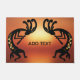 南西部の砂漠の夕日ココペリラグのドールマットあなたのデコカスタマイズアに合わせて背景の色を可能にする鮮やかな色の組み合わせ。ココペリ先住民アメリカのインド文化古代のエイリアンや部族の芸術と洞窟やインスパイア岩のスケッチに起因する。南カスタマイズ南スタイル先住民アメリカのドアマット敷物の色とスタイル。ギフト素晴らしアイディア。