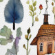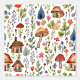 可愛いお洒落水の色のコテージのコアビレッジ、花、キノコや木。この愛らしいコテージのコアをテーマにした壁紙を使用して、ベッドルームに何か奇妙なものを追加する。