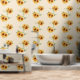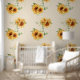 柔らかいスタイルの黄色い背景に水彩のスタイルひまわり花が並んだ美しいひまわり花柄を特徴とするコテージのシックな壁紙。それはどの部屋にも居心地の良いコテージの雰囲気を加える。